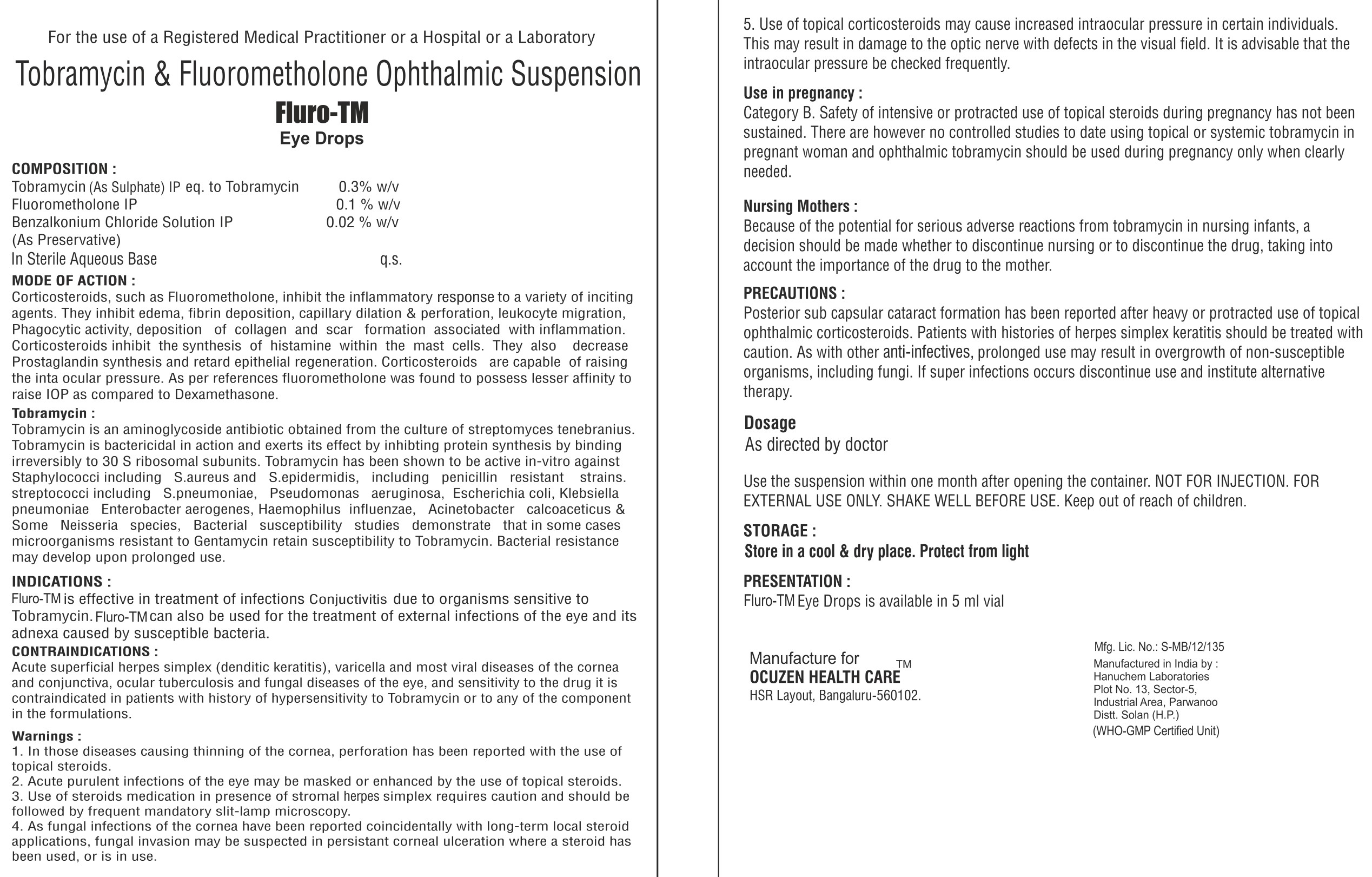 Tobramycin Sulphate & Flurometholone Ophthalmic Sespension